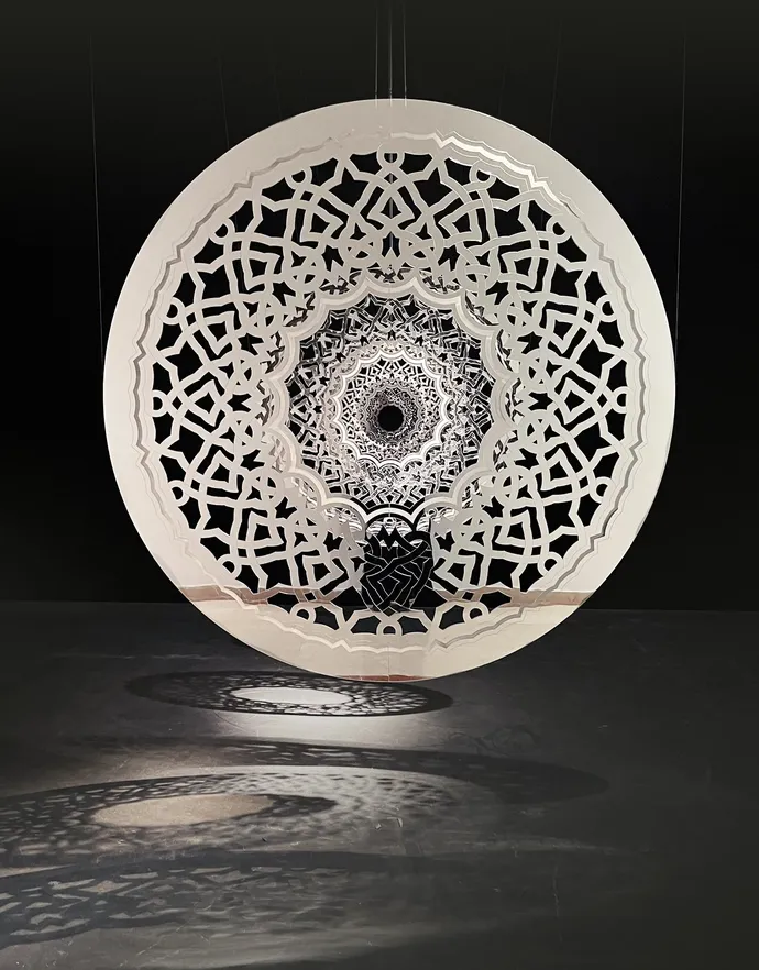 I’ve been working with light as part of my practice since the earliest stages of my artistic career, but particularly during my MA in Digital Arts. I experimented with projections, reflections and shadows, influenced by cutwork material in Islamic art and architecture. I was keen to explore how the visual effects might be more reflective of natural phenomena and real-time movement.